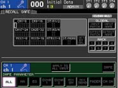 The LS9 scene memory allows instant store and recall of all console parameters, including head amp gain. The Recall Safe function can be used to exclude specified channels from scene recall operations, making it possible to leave sound effect or MC channels unaffected by scene recall, for example. There's also the Recall Focus function that makes it possible to specify which function group will be affected by scene recall: head amp, virtual rack, input patch, output patch, input channel, or output channel.
