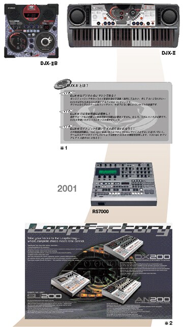 Introduced in 2001 at the same time as our MOTIF synth, the RS7000 is a music production workstation that integrates an RM1x and a SU700 into one device, providing functions and effects that were the state-of-the-art at the time. This instrument also featured an Integrated Sampling Sequencer (ISS), which combines samples with MIDI, something that was highly significant in the way in which it changed the conventional approach to music production. The ISS and many other unique features of the RS7000 later found their way into the MOTIF as these instruments disappeared from our product lineup. Hand in hand with the synthesizer, however, they played a crucial role in setting up the music scene of the 21st century, where loop- and block-based music production techniques have become the mainstay.